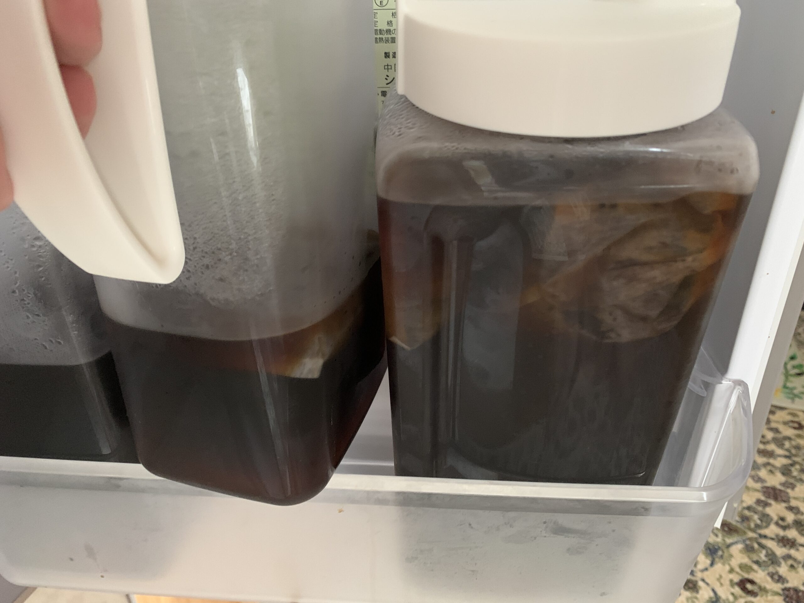 冷蔵庫から取り出すところの水出しコーヒー